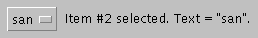 action()method (which is the same ase.arg), is the string from the selected item.Besides the methods used above, the Choice class defines these other useful methods://...Where instance variables are defined: Choice choice; //pop-up list of choices //...Where initialization occurs: choice = new Choice(); choice.addItem("ichi"); choice.addItem("ni"); choice.addItem("san"); choice.addItem("yon"); label = new Label(); setLabelText(choice.getSelectedIndex(), choice.getSelectedItem()); . . . public boolean action(Event e, Object arg) { if (e.target instanceof Choice) { setLabelText(choice.getSelectedIndex(), (String)arg); return true; } return false; } }