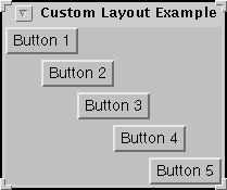 Here's source code for a custom layout manager named DiagonalLayout. It lays out components diagonally, from left to right, with one component per row.