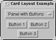 FlowLayout is the default layout manager for all Panels. It simply lays out components from left to right, starting new rows if necessary. Both Panels in the CardLayout figure above use FlowLayouts. Here's another example of an applet that uses a FlowLayout.