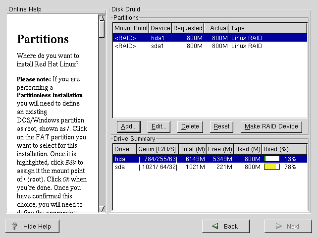 Before you can create a RAID device, you must first create RAID partitions, using the following step-by-step instructions.