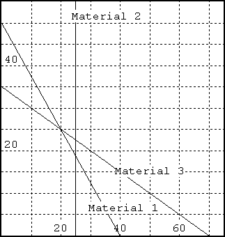 | Subject to: | .5 S | + | .4 F | ≤ | 20 | (Material 1) |