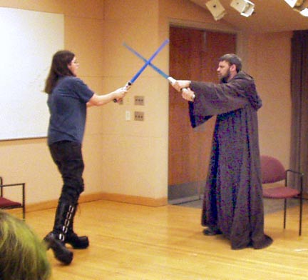 Darth Vader (Rob Speer '06) and Ben Kenobi (David Jedlinsky '89) square off (credit: Kimmerie Jones)