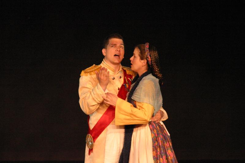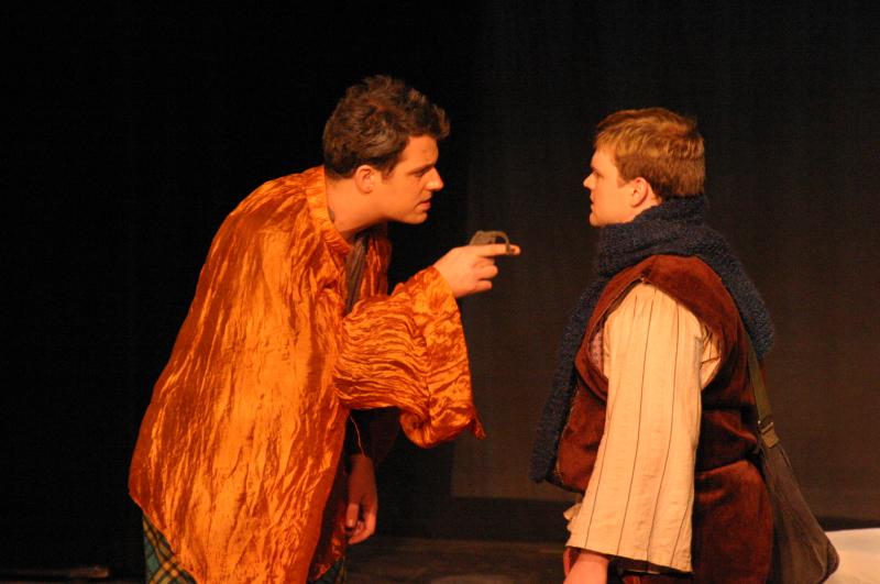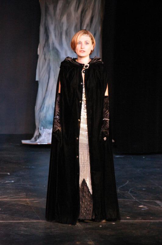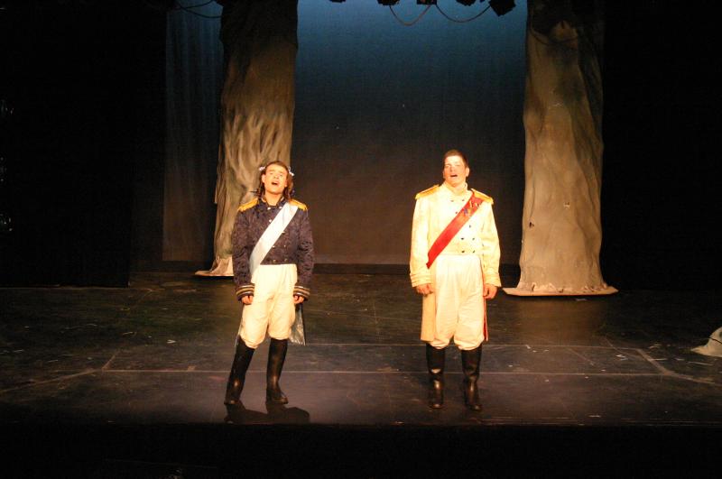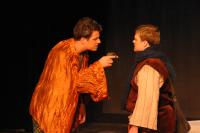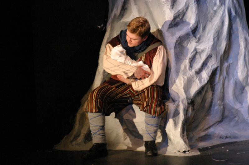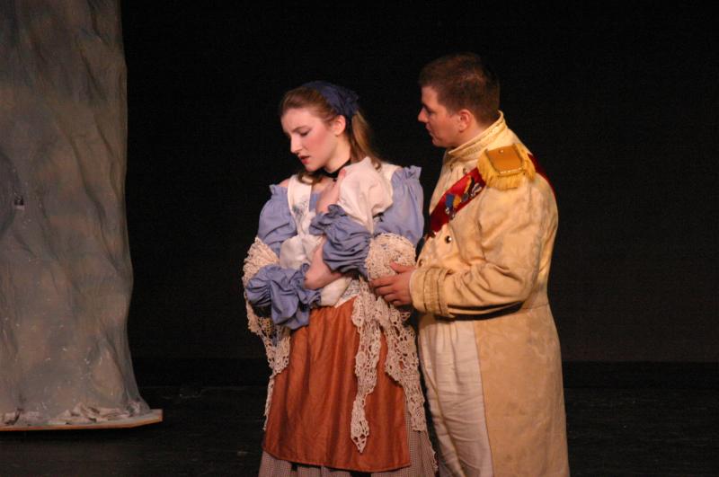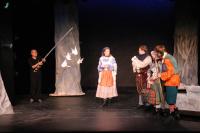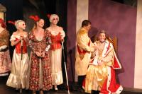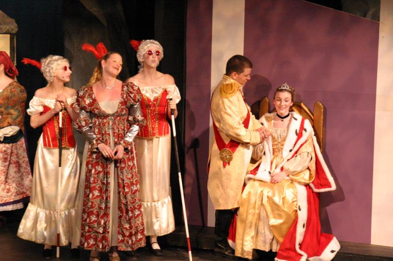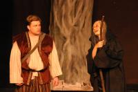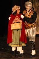 Red Ridinghood (Miranda Knutson) meets a Wolf (Rogue Shindler) (credit: Jax Kirtley) The Witch (Welkin Pope, below), extols the virtues of Rapunzel's hair (Caitlin Smythe) (credit: Jax Kirtley) The Mysterious Man (Jamez Kirtley) and the Baker (Pete Chambers) face off (credit: Jax Kirtley) The Royal Family (Marissa Jacovich, Steph Chiesi, Jenn Braun) and the Prince (Rogue Shindler) sing to Cinderella (Nori Pritchard) (credit: Jax Kirtley) Cinderella's Prince (Rogue Shindler) has a moment in the woods with the Baker's Wife (Caitlin Marlow) (credit: Jax Kirtley) Cinderella (Nori Pritchard) says good-bye to her Prince (Rogue Shindler) (credit: Jax Kirtley) |