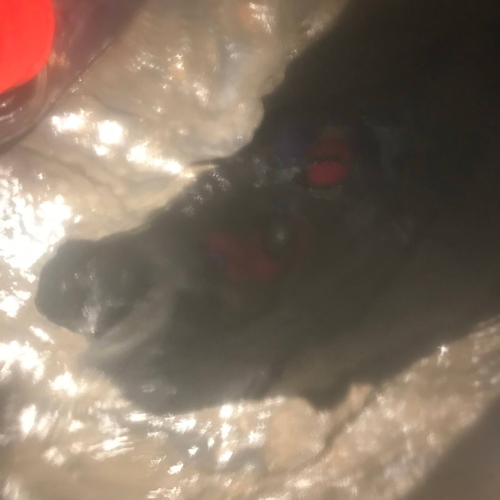 After the otter slide, the cave actually opens up again and we went through some walking passage to the Spider Room. There were no spiders in the Spider Room, but on the map the passages coming out of it look a little bit like spider webs. There is a hidden bolt in the spider room wall that we unsuccessfully searched for while hanging out there. From the Spider Room onward the cave was mostly crawling and low walking. The end of the cave is a little uneventful, as it just keeping going lower until it fills with water and becomes unpassable. We all took a look at the water at the end, and then headed back.