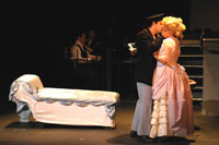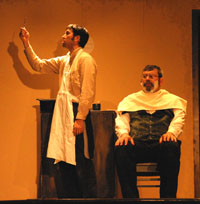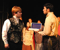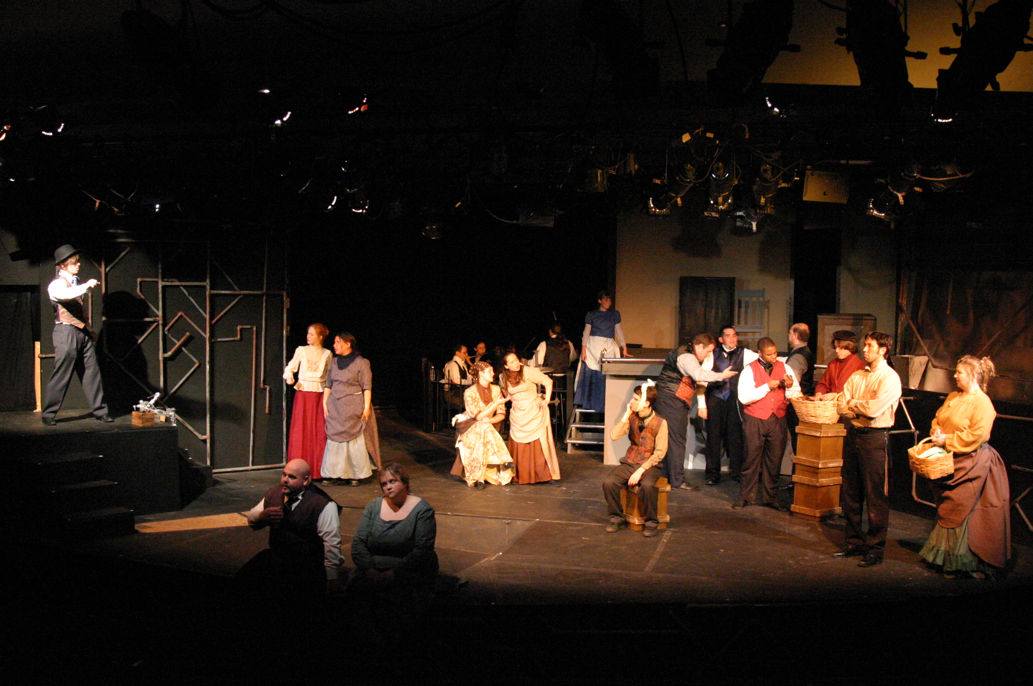 | The entire cast urges you to attend the tale of Sweeney Todd. (credit: Jax Kirtley) Johanna (Lauren Bakis) sings "Green Finch and Linnet Bird" as a birdseller (Dawn Erickson '07) listens in. (credit: Jax Kirtley) As Johanna (Lauren Bakis) sits pensively in her room, the Judge (Alan Viens) prays for repentance near a strange machine (operated by Emilia Thurber and Elissa Verrilli). (credit: Jax Kirtley) The Judge (Alan Viens) passes sentence on a delinquent. (credit: Jax Kirtley) 6460 (credit: Jax Kirtley) 6625 (credit: Jax Kirtley) 6833 (credit: Jax Kirtley) 6894 (credit: Jax Kirtley) 6951 (credit: Jax Kirtley) 7007 (credit: Jax Kirtley) 7074 (credit: Jax Kirtley) | Sweeney (Aaron Moronez '04) and Anthony (Matt Stern '08) are accosted by a beggar woman (Noe Kamelanela '05). (credit: Jax Kirtley) Johanna's mother (Lauren Bakis) trapped in a macabre masquerade. (credit: Jax Kirtley) Mrs. Lovett (Kristin Hughes) tries to lift the spirits of Sweeney (Aaron Moronez '04). (credit: Jax Kirtley) Sweeney (Aaron Moronez '04) prepares to put the Judge (Alan Viens C) through a very close shave. (credit: Jax Kirtley) 6575 (credit: Jax Kirtley) 6632 (credit: Jax Kirtley) 6861 (credit: Jax Kirtley) 6905 (credit: Jax Kirtley) 6977 (credit: Jax Kirtley) 7039 (credit: Jax Kirtley) | Mrs. Lovett (Kristin Hughes) describes her pie-making skills to a shaken Sweeney Todd (Aaron Moronez '04). (credit: Jax Kirtley) Pirelli (David Zych '00), self-proclaimed "barber of kings", is challenged to a duel by Sweeney (Aaron Moronez '04). (credit: Jax Kirtley) Anthony (Matt Stern '08) and Johanna (Lauren Bakis) share a tender moment. (credit: Jax Kirtley) Sweeney Todd (Aaron Moronez '04) prepares his vengeance on mankind. (credit: Jax Kirtley) 6600 (credit: Jax Kirtley) 6671 (credit: Jax Kirtley) 6867 (credit: Jax Kirtley) 6927 (credit: Jax Kirtley) 6986 (credit: Jax Kirtley) 7072 (credit: Jax Kirtley) |