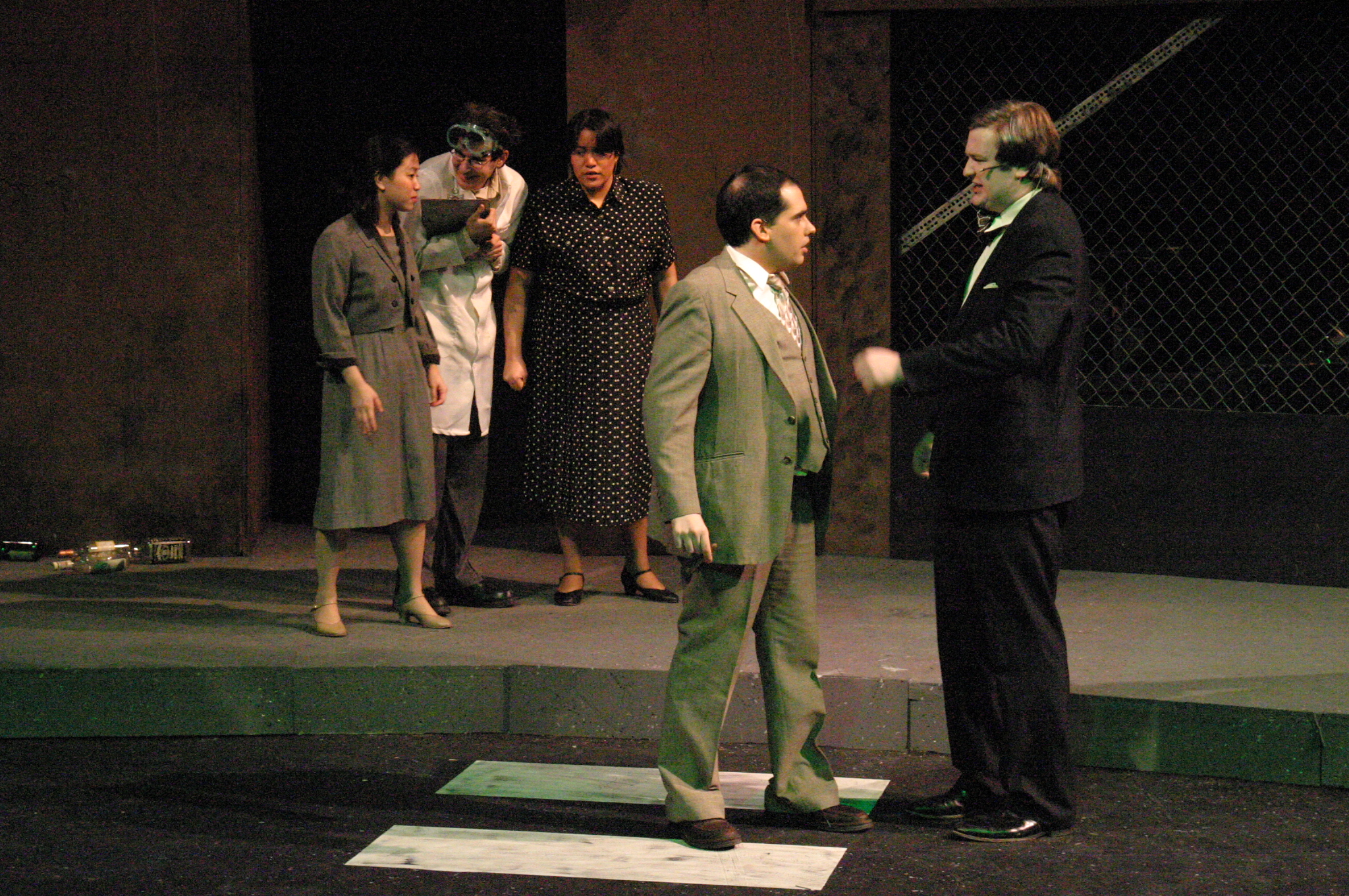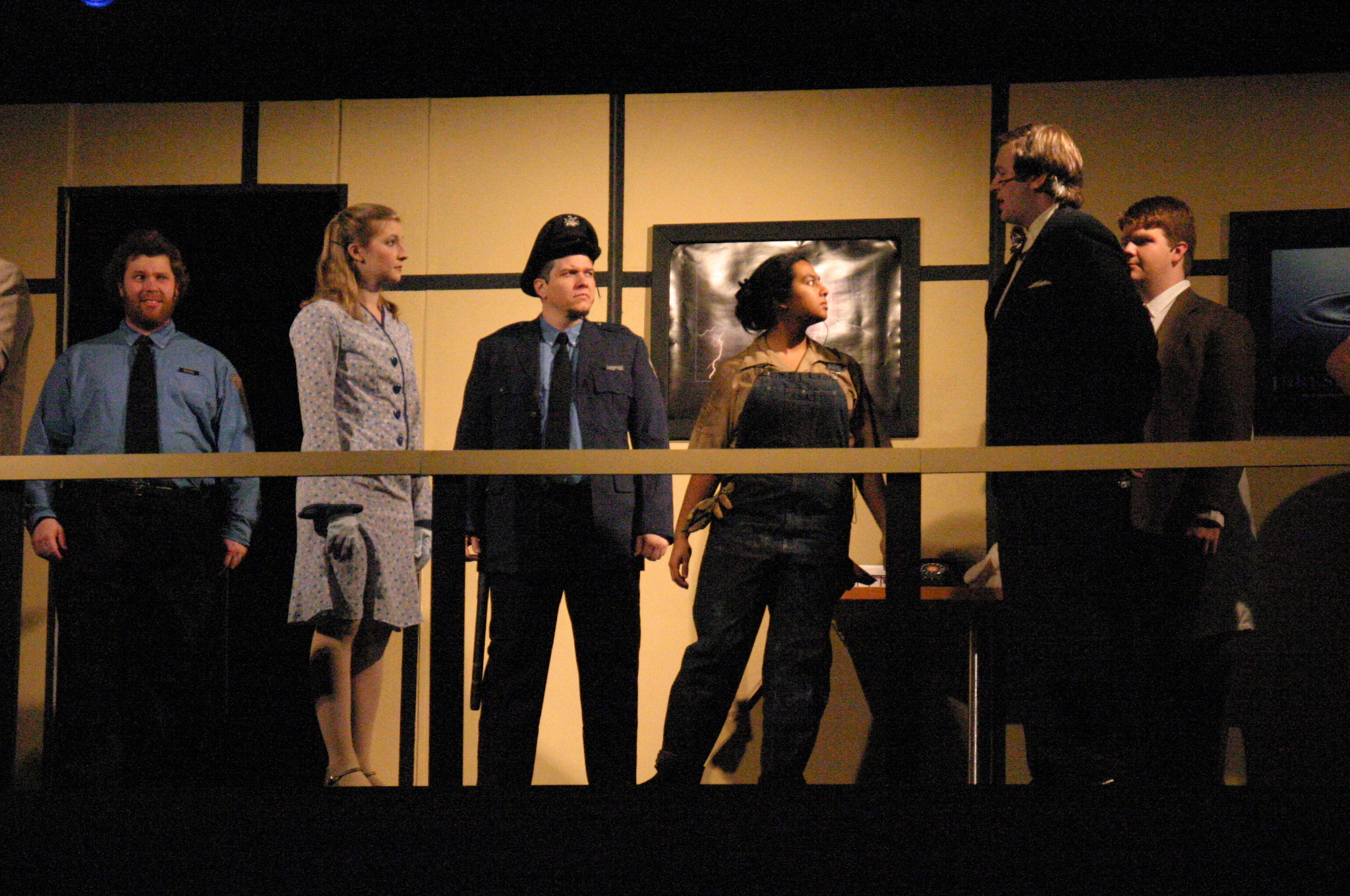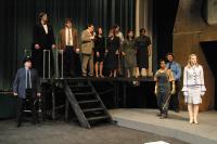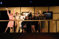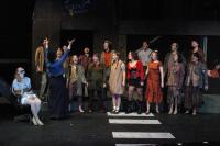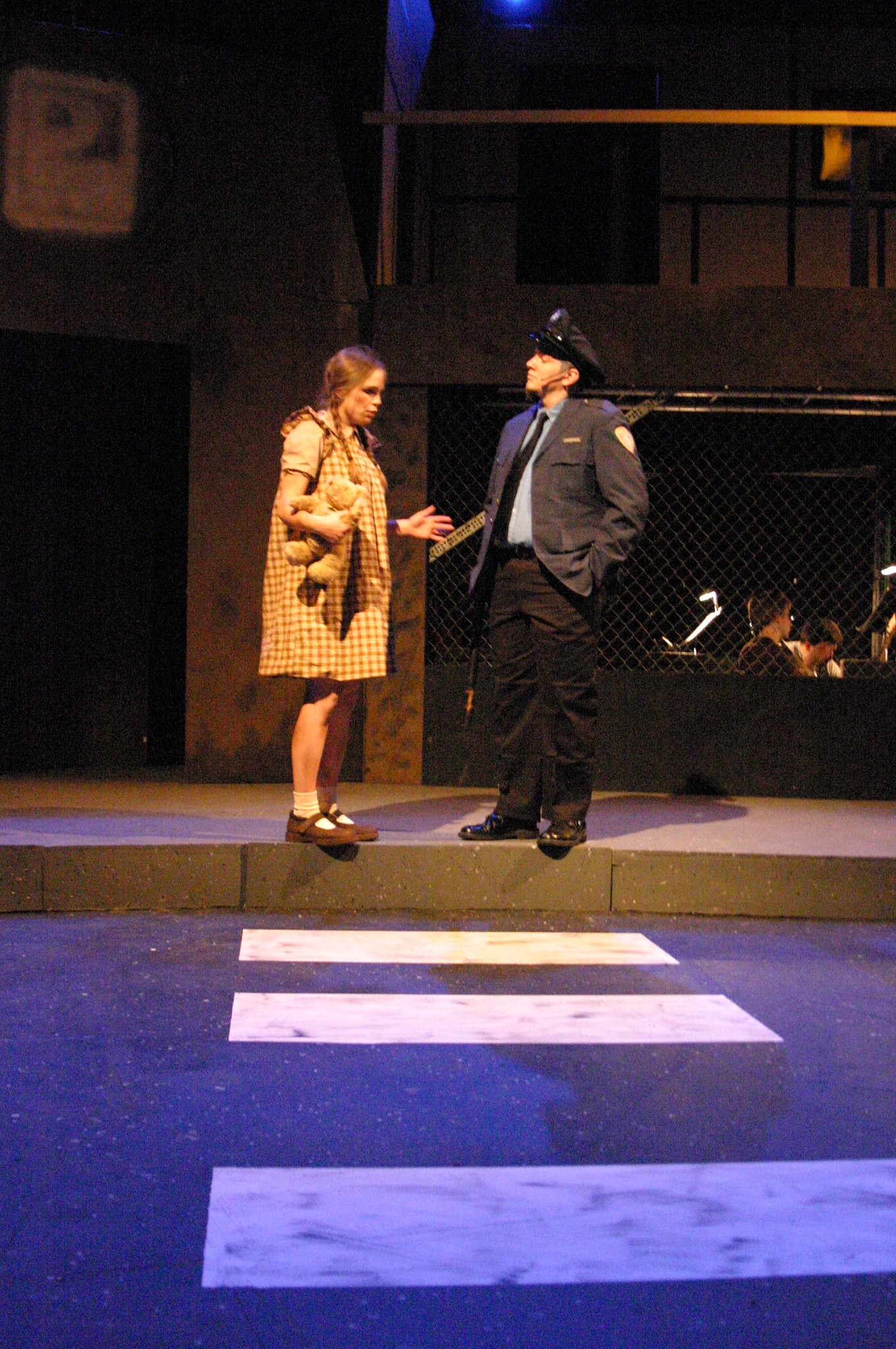 | The Urinetown orchestra (Carol Novitsky, percussion; Phillip Ilten, trombone; Jamez Kirtley, bass; Andrew Greenhut, reeds; Elliot Brandow, drums; Joanne Bruno, keyboard; Liz Zakszewski, conductor) (credit: Jax Kirtley) The Rich (Nori Pritchard, Matt Peairs, Pancho Vargas, Lori Huberman, Darrel Cain, Jackie Weber, Noe Kamelamela, Tim Rades, Maria Duaime) celebrate the marvel that is "Mister Cladwell." (credit: Jax Kirtley) Hope (Nori Pritchard) teaches Bobby (Steven Flowers) to "Follow Your Heart". (credit: Jax Kirtley) The Act One Finale (credit: Jax Kirtley) The Poor surround the captured Hope (Nori Pritchard) as they ask "What Is Urinetown?" (credit: Jax Kirtley) Ma Strong (Mary Linton Peters) leads the poor in the "Run Freedom Run", as Hope (Nori Pritchard) relaxes in a nearby chair. (credit: Jax Kirtley) Hope (Nori Pritchard) convinces the poor to spare her life. (credit: Jax Kirtley) Finale: "I See a River" (credit: Jax Kirtley) | "This is Urinetown." (credit: Jax Kirtley) "Cop Song" (Rob Morrison, Sally Peach, Caitlin Shindler, Kathleen McEnnis, Rogue Shindler, Lee-kai Wang, Stephen Peters, Danbee Kim, Kelly Rockwell, Elena Glassman, Carlos Cardenas) (credit: Jax Kirtley) The Poor (Mary Linton Peters, Elena Glassman, Nicolina Akraboff, Kelly Rockwell, Danbee Kim, Sally Peach, Kathleen McEnnis, Carlos Cardenas, Lee-kai Wang, Stephen Peters) line up to use the local public amenity. (credit: Jax Kirtley) The Rich prepare to quell the rebel uprising. (credit: Jax Kirtley) Little Sally (Nicolina Akraboff) looks on during the raucous "Snuff That Girl" (Kathleen McEnnis, Carlos Cardenas, Kelly Rockwell, Danbee Kim, Sally Peach, Lee-kai Wang) (credit: Jax Kirtley) Senator Fipp (Greg Lohman) confronts Caldwell Cladwell (Darrell Cain) as Caldwell's staff (Maria Duaime, Pancho Vargas, Noe Kamelamela) look on. (credit: Jax Kirtley) "We're Not Sorry" (credit: Jax Kirtley) | Old Man Strong (Stephen Peters, center) is restrained by Officer Barrel (Rob Morrison) as Ms. Pennywise (Koyel Bhattacharyya), Bobby (Steven Flowers) and Officer Lockstock (Rogue Shindler) watch. (credit: Jax Kirtley) Little Sally (Nicolina Akraboff) gives Officer Lockstock (Rogue Shindler) a lesson in elementary hydraulics. (credit: Jax Kirtley) Officer Barrell (Rob Morrison), Hope (Nori Pritchard), and Officer Lockstock (Rogue Shindler) look on as Ms. Pennywise (Koyel Bhattacharyya) confronts Caldwell Cladwell (Darrell Cain) and Mr. McQueen (Tim Rades). (credit: Jax Kirtley) Bobby (Steven Flowers) leads the downtrodden poor in an open revolt. (credit: Jax Kirtley) Little Sally (Nicolina Akraboff) looks on during the raucous "Snuff That Girl" (Kathleen McEnnis, Carlos Cardenas, Danbee Kim, Kelly Rockwell, Sally Peach, Lee-kai Wang) (credit: Jax Kirtley) Barrell (Rob Morrison) and Lockstock (Rogue Shindler) prepare to cart Bobby (Steven Flowers) off to Urinetown. (credit: Jax Kirtley) The Poor celebrate in front of the Bobby Strong Memorial Toilet Authority. (credit: Jax Kirtley) |