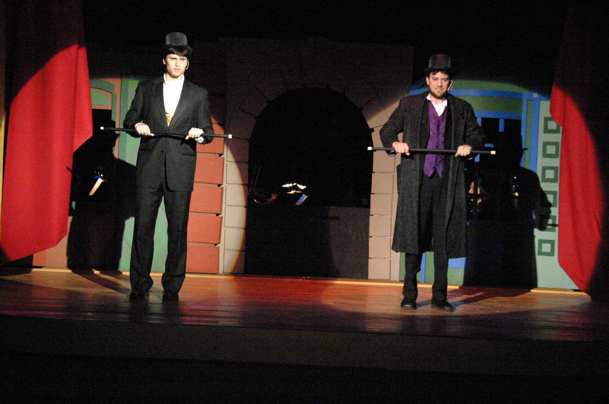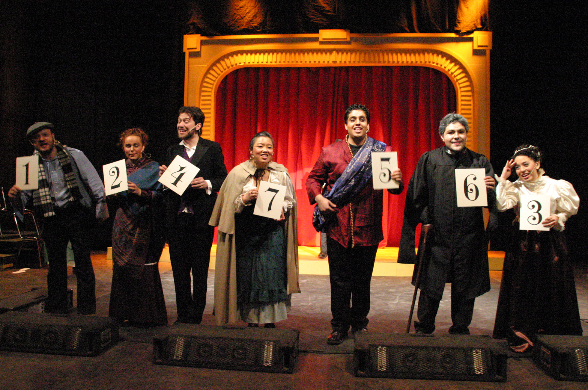 | The Company welcomes you to the Music Hall Royale in "There You Are." (credit: Jax Kirtley '96) Neville Landless (Carlos Cardenas '09) tells the Reverend Mr. Crisparkle (Luis Loya '06) that he will change his hot-tempered ways while John Jasper (Matt Peairs '09) looks on. (credit: Jax Kirtley '96) Edwin Drood (Suzie Greenman '11) meets Neville Landless (Carlos Cardenas '09) for the first time while Rosa Bud, The Rev. Crisparkle (Luis Loya '06) and Helena Landless (Priscilla Army '10) look on. (credit: Jax Kirtley '96) Young Deputy (Elise Kuo '11) holds her own against John Jasper (Matt Peairs '09) in a graveyard scuffle. (credit: Jax Kirtley '96) The Chairman (Brian Kardon '08, G) warns you not to leap to any conclusions! (credit: Jax Kirtley '96) The Company goes "Off to the Races." (credit: Jax Kirtley '96) Detective Datchery (Suzie Greenman '10) questions Mayor Sapsea (Brian Kardon '08, G) while the Princess Puffer (Danbee Kim '09) speaks with Deputy (Elise Kuo '11). (credit: Jax Kirtley '96) The Company warns you, "Don't Quit While You're Ahead." (credit: Jax Kirtley '96) The Princess Puffer (Danbee Kim '09) reveals her identity to Rosa Bud (Karen Wong '10). (credit: Jax Kirtley '96) Every show needs a happy ending! The wicked audience has voted siblings Neville and Helena Landless (Carlos Cardenas '09 and Priscilla Army '10) to be lovers this evening. (credit: Jax Kirtley '96) | John Jasper (Matt Peairs '09) is very close to his nephew, Edwin Drood (Suzie Greenman '11). (credit: Jax Kirtley '96) The Princess Puffer (Danbee Kim '09) presides over the opium den in London in "Wages of Sin." (credit: Jax Kirtley '96) The Chairman (Brian Kardon '08, G) and John Jasper (Matt Peais '09) lament the difficulties of having split personalities in "Both Sides of the Coin." (credit: Jax Kirtley '96) Rosa Bud (Karen Wong '010) and Edwin Drood (Suzie Greenman '011) call off their long engagement. (credit: Jax Kirtley '96) Bazzard (Benji Moncivaiz '11) enjoys his moment in the spotlight in "Never the Luck." (credit: Jax Kirtley '96) Detective Dick Datchery (Suzie Greenman '10) snoops around Cloisterham. (credit: Jax Kirtley '96) John Jasper (Matt Peairs '09) finally confesses his love to Rosa (Karen Wong '10). (credit: Jax Kirtley '96) Here at the Music Hall Royale, we boo and hiss the villain, John Jasper (Matt Peairs '09). (credit: Jax Kirtley '96) John Jasper (Matt Peairs '09) confesses to murdering his nephew. (credit: Jax Kirtley '96) Edwin Drood (Suzie Greenman '11) is alive! (credit: Jax Kirtley '96) | John Jasper (Matt Peairs '09) gives music lessons to the lovely Rosa Bud (Karen Wong '10). (credit: Jax Kirtley '96) The Princess Puffer (Danbee Kim '09) provides John Jasper (Matt Peairs '09) with laudanum wine. (credit: Jax Kirtley '96) The Chairman (Brian Kardon '08, G) is frustrated by the antics of Durdles (Dave Berger C) and his assistant, Deputy (Elise Kuo '11). (credit: Jax Kirtley '96) True intentions are revealed over Christmas dinner in "No Good Can Come from Bad." (credit: Jax Kirtley '96) Helena Landless (Priscilla Army '10) defends her brother Neville (Caros Cardenas '09) against accusations from city officials such as the Mayor Sapsea (Brian Kardon '08, G) (credit: Jax Kirtley '96) Dick Datchery (Suzie Greenman '11) and The Princess Puffer (Danbee Kim '09) look for clues in "Private Investigation." (credit: Jax Kirtley '96) The Princess Puffer (Danbee Kim '09) explains to Deputy (Elise Kuo '11) and Durdles (Dave Berger C) that she never quits when she's ahead. (credit: Jax Kirtley '96) The Murderer candidates vie for votes. (credit: Jax Kirtley '96) Durdles (Dave Berger C) reveals some twists and turns to the company! (credit: Jax Kirtley '96) |