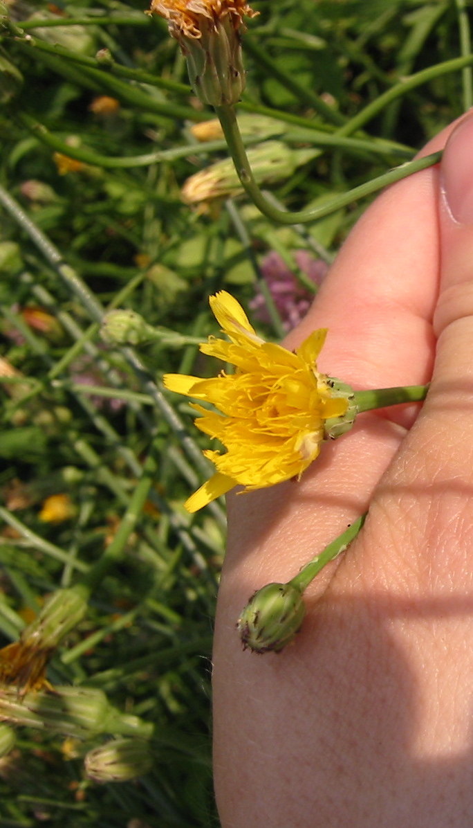 Description : This floppy straggly plant has hairy but dandelion shaped basal leaves. The stems are branched.