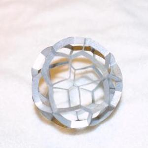However, to scale down the models, I needed the edges to be much more evenly spaced. Leaving everything up to chance had a certain purity that I liked, but obviously some post-processing was in order, so after picking the points out of a uniform distribution, I ran an algorithm to push nearest pairs of generator points apart slightly, then normalise them back to the surfact of the sphere.