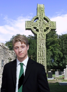 He is of medium height (about 5'11") and of moderate build. He has very striking grey-blue eyes and blonde hair that he wears cut short.