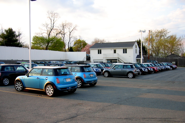 May was the month of visiting MINI land for a checkup. My car's evil twin pulled in nect to it, shortly after I arrived. (You can tell it's Evil, because the roof is black and the antenna is broken.) |