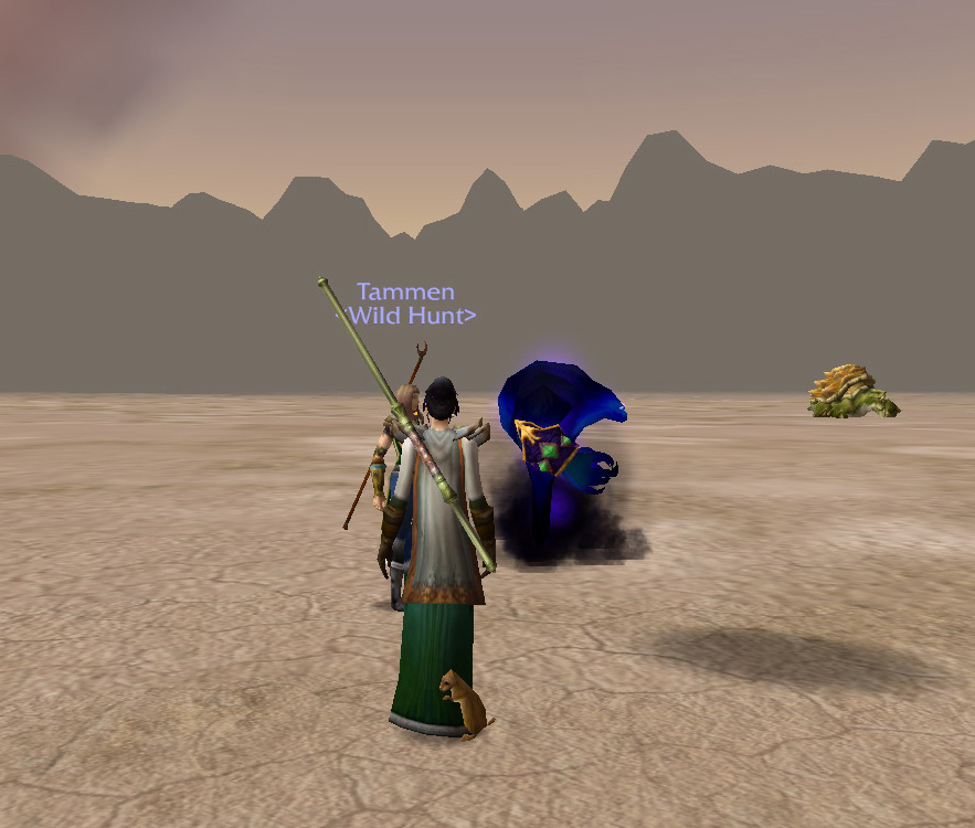 My pet prarie dog cowers against my leg after accidentally being fed to the monsters.