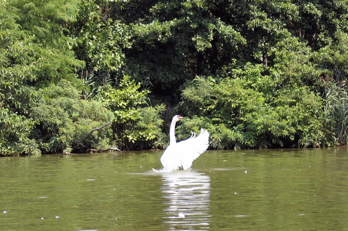 We saw two more swans (or maybe the same two as before?) further west and they were very active -- lots of wing flapping.