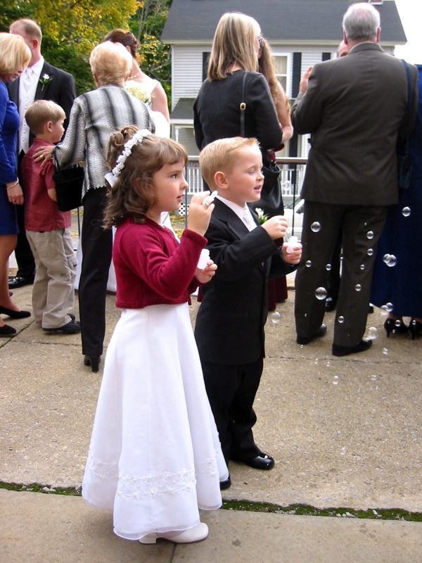 Blowing bubbles outside of the church after the ceremony.