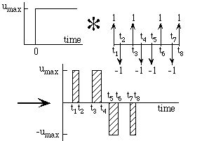 To generate shaped inputs for on-off actuators, the amplitudes of the impulses must have specific values and in a specific order. For example, if the amplitudes are 1, -2, 2, -2, 1, then convolution of the shaper with a step input will produce an on-off command profile.