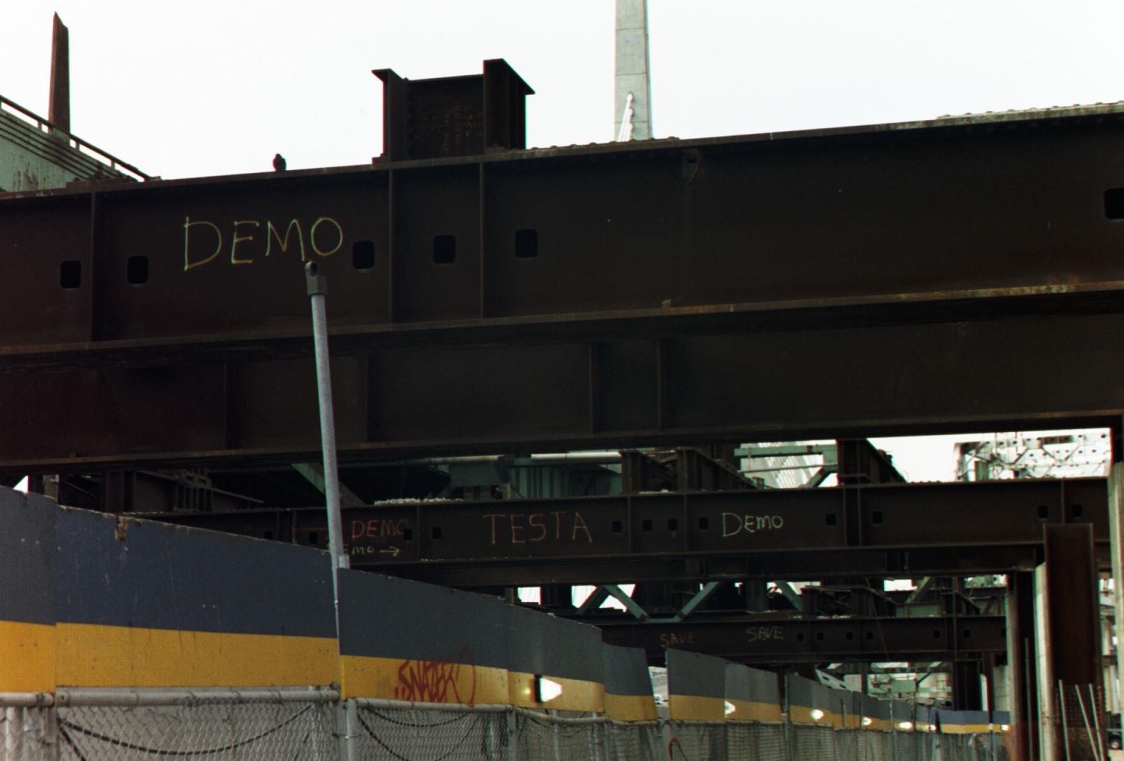 Girders are marked for demolition.