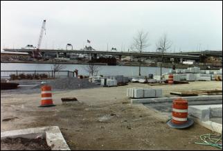 Description : Part of the Big Dig project is building new parkland along the Charles River. Here work is going on near North Station. 93 and the Zakim Bridge are to the right; the Museum of Science is to the left.