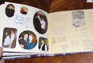 Pictures of the guest book after the amateur pictures from the wedding & shivaree have been added to the rebound book. I'm pleased to say that the outside of the book still looks the same after pulling the ribbon out and putting it back. |