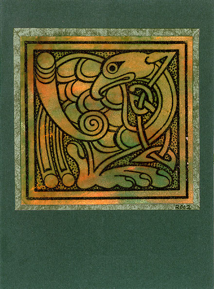 Celtic design cards for St Patrick's Day. Funky spotted bird.