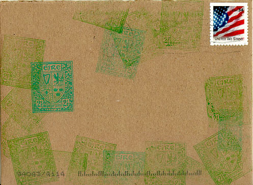 Mottled red-brown, gold, & green. [Envelope] |