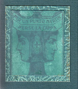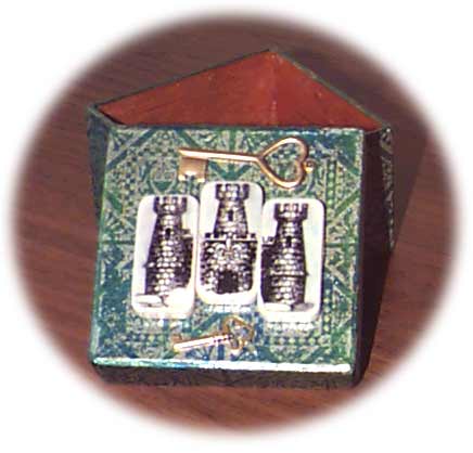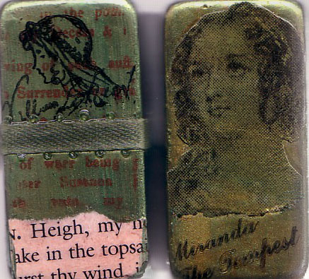 Christine made me a little olive green Shakespeare themed domino book (whit dominos for covers.) It came in a little box with green paper, with a card and in another green box. |
