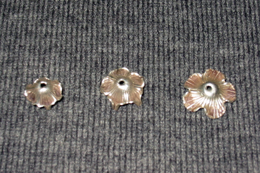 The leftmost one if how they started. The center one is how far I'd squashed them to fit on the blue bead. The rightmost is the squashing required to make them fit on the big fat green bead. |
