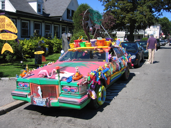 In front of the Leaping Lizard Gallery, Bar Harbor