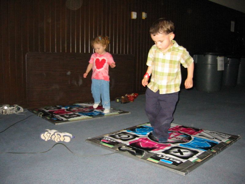 Small children playing DDR - sometimes they get it, sometimes they don't.