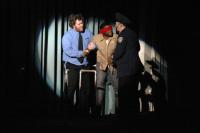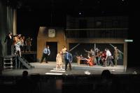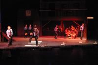 Old Man Strong (Stephen Peters, center) is restrained by Officer Barrel (Rob Morrison) as Ms. Pennywise (Koyel Bhattacharyya), Bobby (Steven Flowers) and Officer Lockstock (Rogue Shindler) watch. (credit: Jax Kirtley) Little Sally (Nicolina Akraboff) gives Officer Lockstock (Rogue Shindler) a lesson in elementary hydraulics. (credit: Jax Kirtley) Officer Barrell (Rob Morrison), Hope (Nori Pritchard), and Officer Lockstock (Rogue Shindler) look on as Ms. Pennywise (Koyel Bhattacharyya) confronts Caldwell Cladwell (Darrell Cain) and Mr. McQueen (Tim Rades). (credit: Jax Kirtley) Bobby (Steven Flowers) leads the downtrodden poor in an open revolt. (credit: Jax Kirtley) Little Sally (Nicolina Akraboff) looks on during the raucous "Snuff That Girl" (Kathleen McEnnis, Carlos Cardenas, Danbee Kim, Kelly Rockwell, Sally Peach, Lee-kai Wang) (credit: Jax Kirtley) Barrell (Rob Morrison) and Lockstock (Rogue Shindler) prepare to cart Bobby (Steven Flowers) off to Urinetown. (credit: Jax Kirtley) The Poor celebrate in front of the Bobby Strong Memorial Toilet Authority. (credit: Jax Kirtley) |