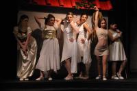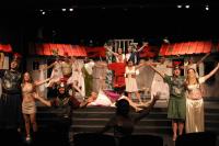 Pseudolus (Tim Abrahamsen '06) and the Proteans (Milo Martinez '08, Nicole O'Keefe '09, and Armen Babikyan) introduce us to a 'Comedy Tonight'. (credit: Jax Kirtley) Introducing Marcus Lycus (Bill Andrews '06). (credit: Jax Kirtley) Vibrata (Sarah Slotznick '09) demonstrates her assests to Marcus Lycus (Bill Andrews '06) and his staff (Milo Martinez '08, Armen Babikyan, and Nicole O'Keefe '09), Pseudolus (Tim Abrahamsen '06), and Hero (Yonatan Arie Gray '10). (credit: Jax Kirtley) Senex (Greg Lohman G), Pseudolus (Tim Abrahamsen '06), and Hysterium (Daniel Perez '10) declare that 'Everybody Ought to Have a Maid' (credit: Jax Kirtley) Soldiers (Nicole O'Keefe '09 and Armen Babikyan) show Peudolus (Tim Abrahamsen '06) the contract for Phila. (credit: Jax Kirtley) Milos Gloriousus (Misha Leybovich G) and his Soldiers (Armen Babikyan, Nicole O'Keefe '09, and Milo Martinez '08) introduce Miles Gloriousus. (credit: Jax Kirtley) Philia (Kathleen McEnnis '07) shows Hero (Yonatan Arie Gray '10) how she will get back at her captain in 'That'll Show Him'. (credit: Jax Kirtley) In the end, it is a 'Comedy Tonight'. (credit: Jax Kirtley) |