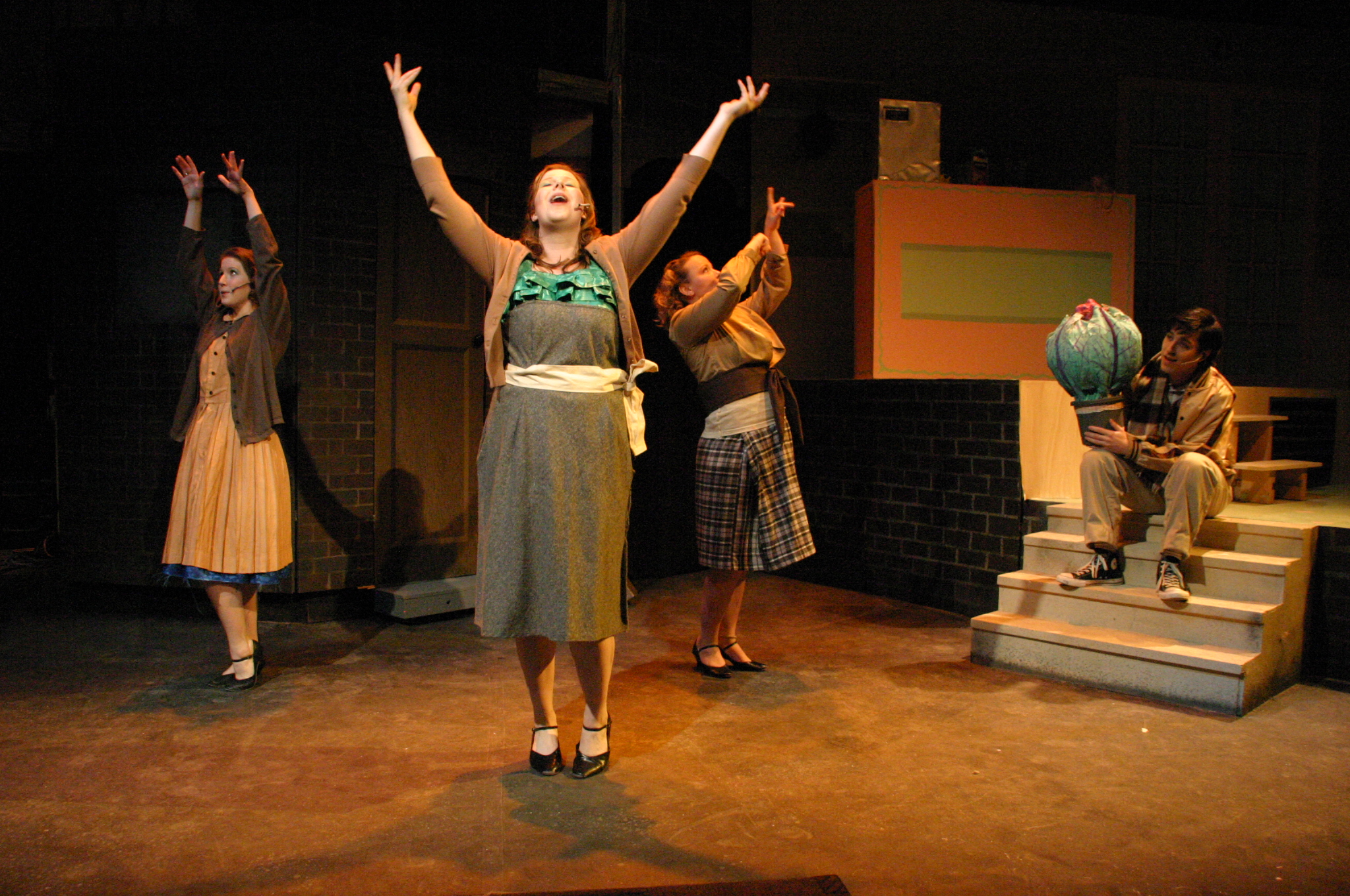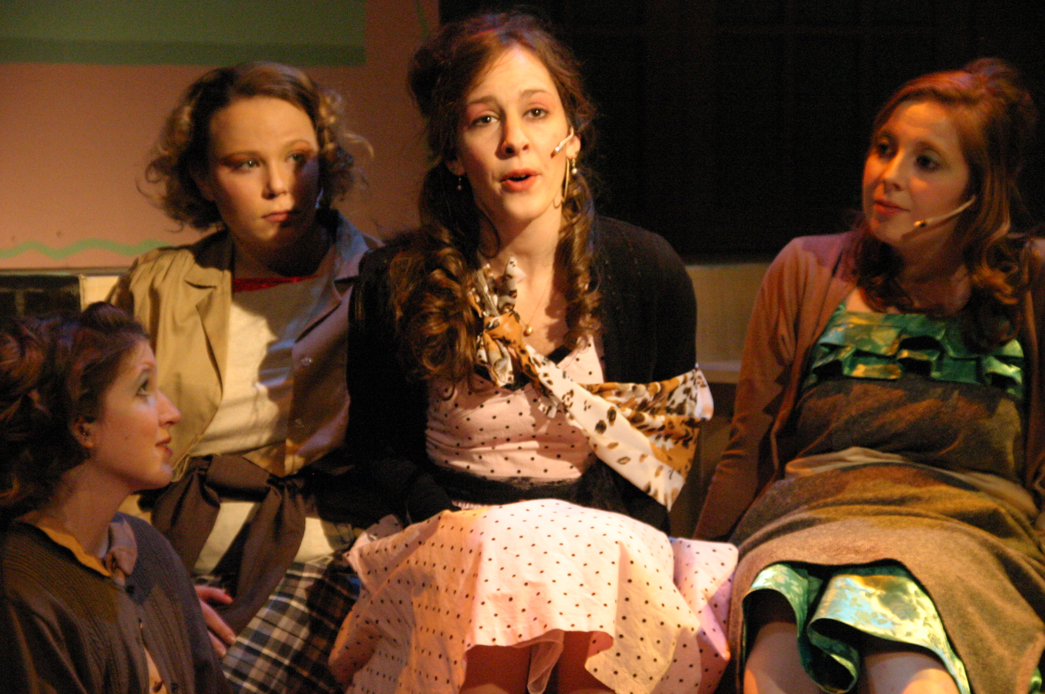 'Somewhere That's Green' Audrey (Rachel Williams '12) with the Stoop Girls (Emily Moberg '11, Priscilla Army '10, and Marta Milan '10) (credit: Jax Kirtley '96)