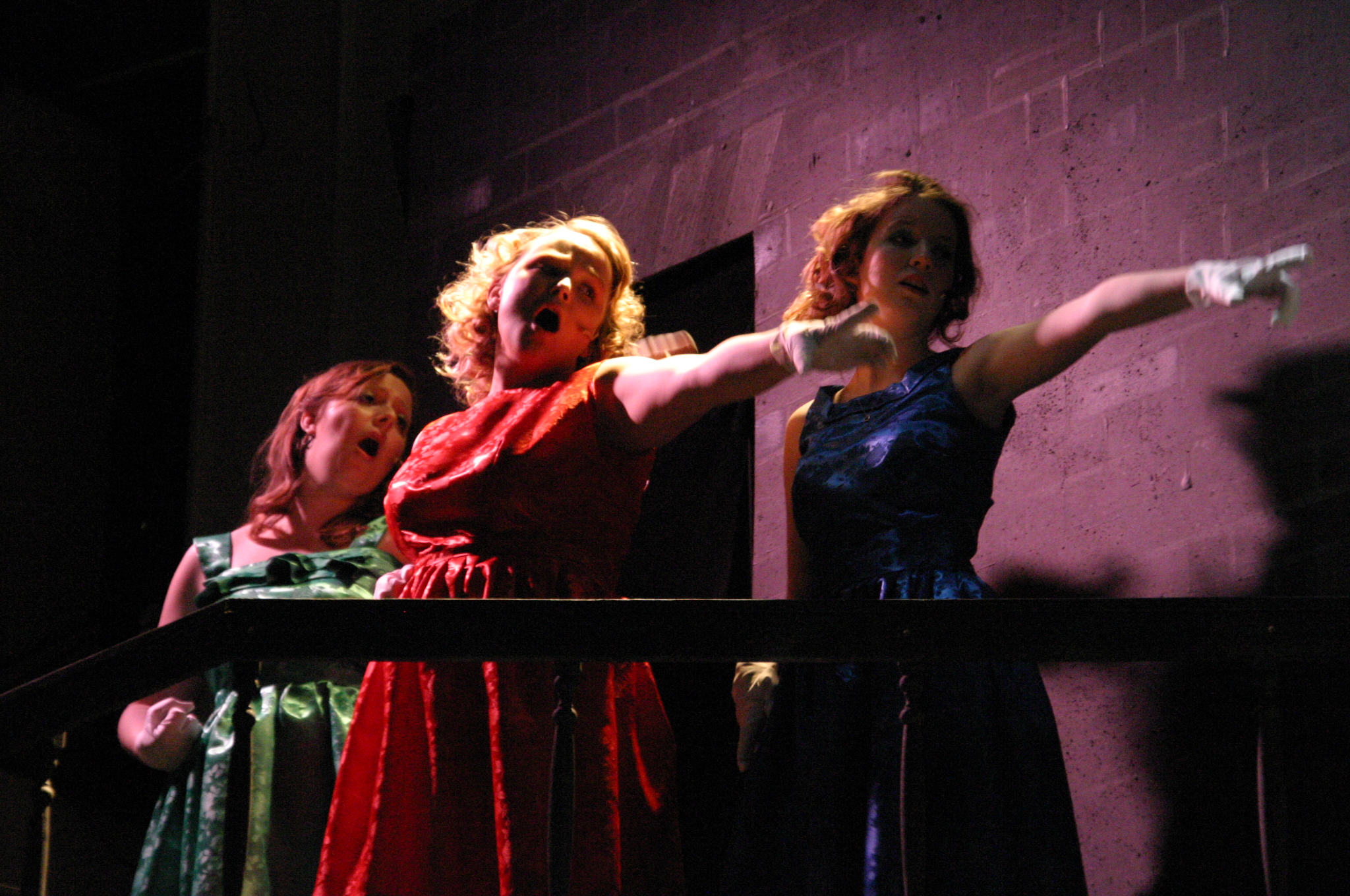 Crystal (Priscilla Army '10), Ronnette (Marta Milan '10), and Chiffon (Emily Moberg '11) trade forboding looks. (credit: Jax Kirtley '96)