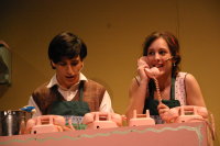 'Open wide!' Orin (Matthew Cohen '10) inspects Seymour's (Yoni Gray '10) mouth. (credit: Jax Kirtley '96)