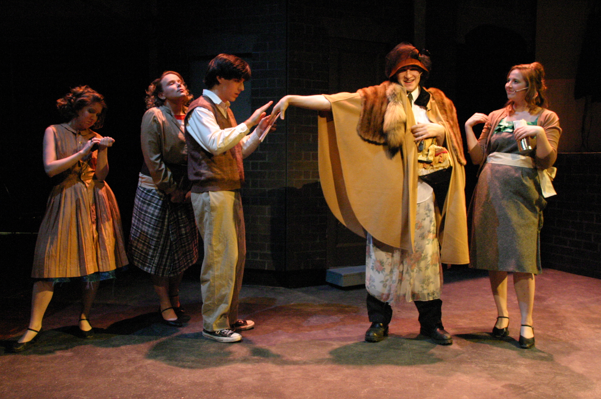 'Dentist!' Orin (Matthew Cohen '10) with the Stoop Girls (Marta Milan '10, Priscilla Army '10, and Emily Moberg '11) (credit: Jax Kirtley '96)
