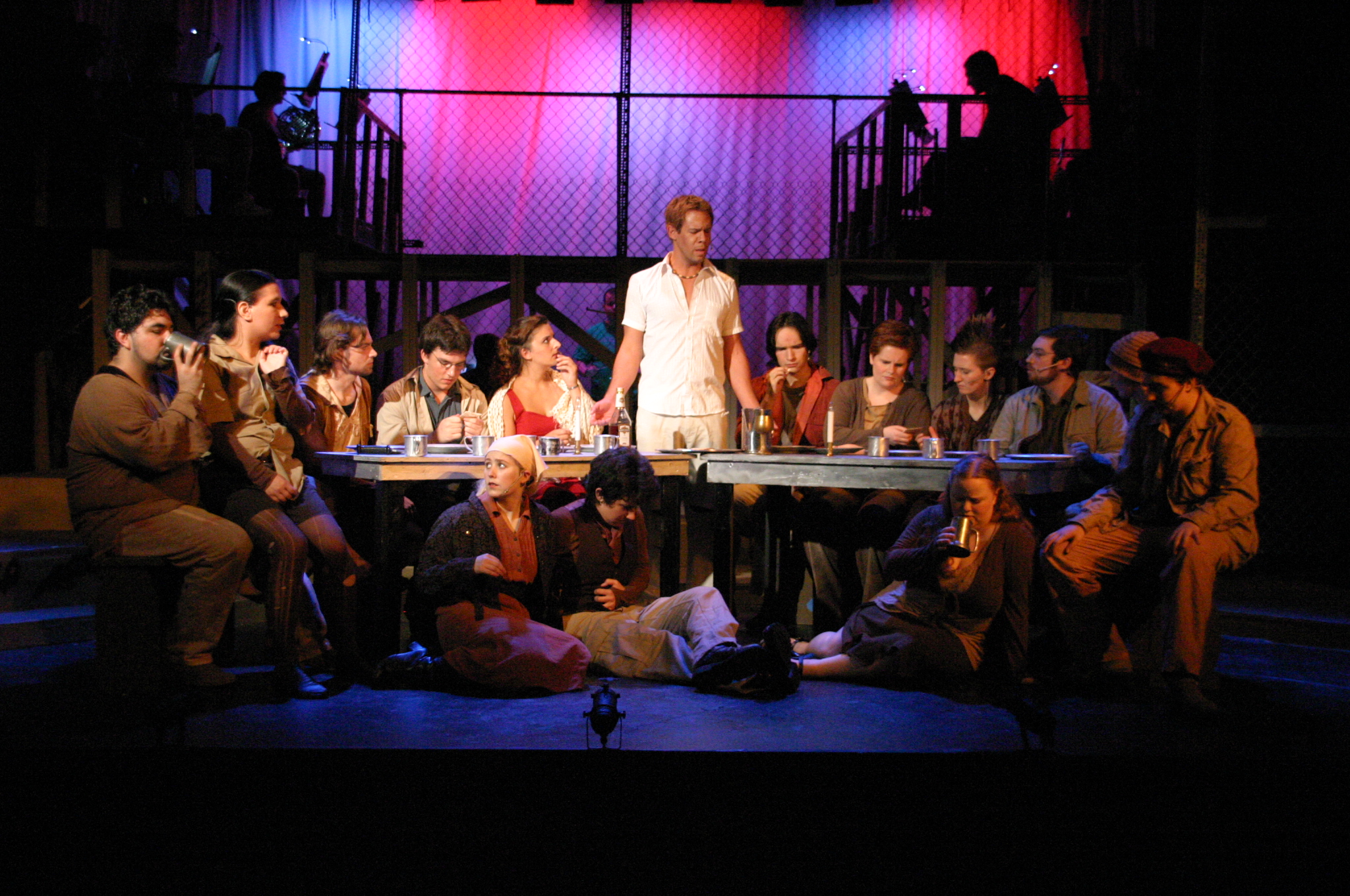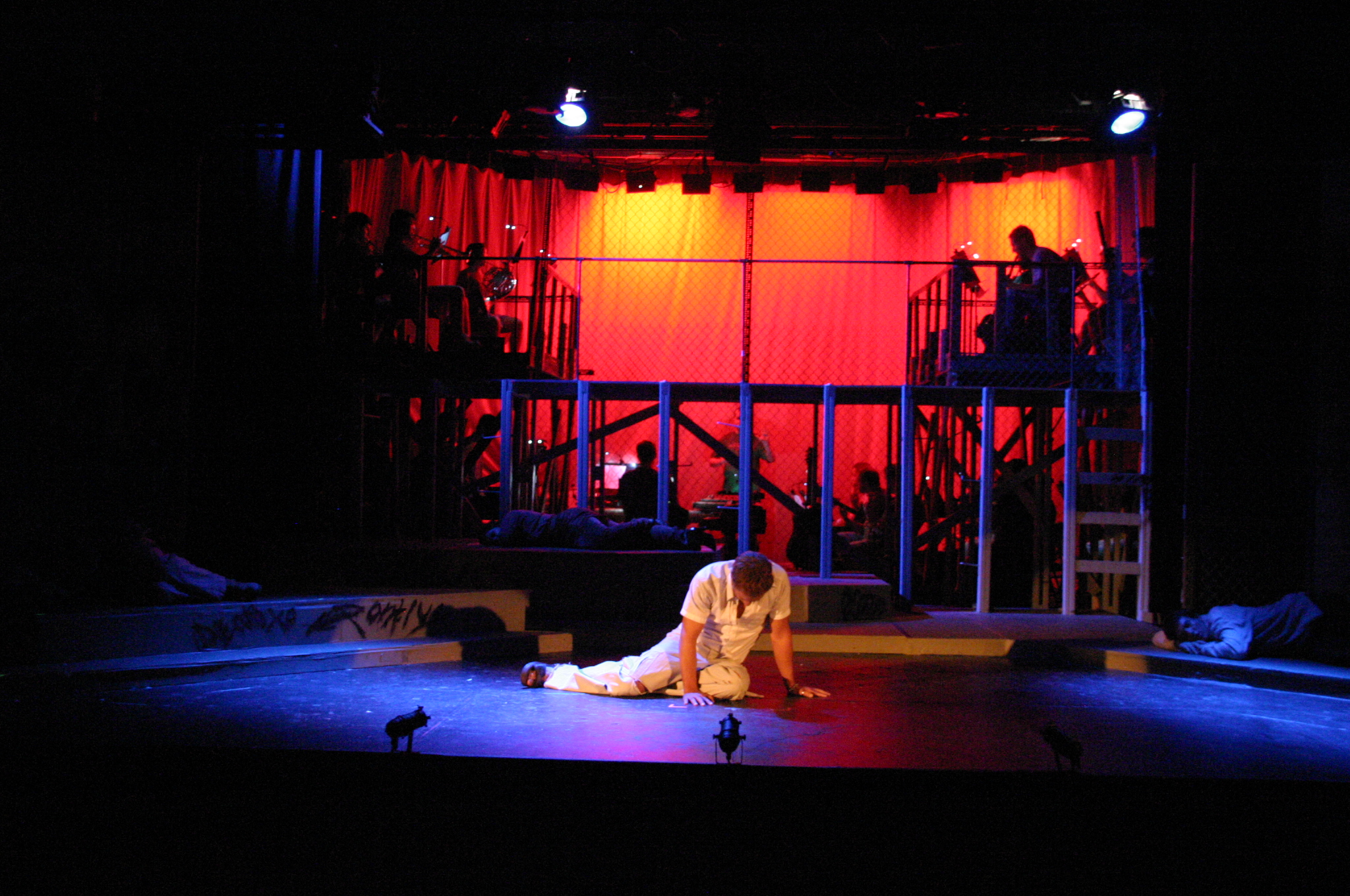 Heaven on Their Minds - (balcony) Brad Smith, Rich Fulkerson (foreground) Kevin Smith, Carrie Lee '10, Sallie Guthrie '13, JB Parkes '13, Helen O'Keefe '09, Betsy Flowers '12, Sally Peach '09, Luis Loya '06, Josh Marcus, Hubert Hwang '07, Matt Peairs '09 (credit: Jax Kirtley'96) Everything's Allright - (foreground) Carrie Lee '10, Kevin Brown (background) Rachel Bowens-Rubin '11, Sally Peach '09, Rich Fulkerson, JB Parkes '13, Helen O'Keefe '09, Emily Rosser '12, Dawn Erickson '07, Sally Guthrie '13 (credit: Jax Kirtley'96) Simon Zealotes - (balcony) Betsy Flowers '12 (foreground) - Dawn Erickson '07, Tori Root, Daniel Ruiz (background) Luis Loya '06, Emily Rosser '12, Sally Guthrie '13, JB Parkes '13 Josh Marcus, Jasmine Florentine '11, Helen O'Keefe '09, Rachel Bowens-Rubin '11, Sally Peach '09 (credit: Jax Kirtley'96) The Temple - Helen O'Keefe '09, Emily Rosser '12, Kevin Brown, Rachel Bowens-Rubin '11, Carrie Lee '10, Tori Root (credit: Jax Kirtley'96) Damned for All Time - (foreground) Hubert Hwang '07, Rich Fulkerson, Matt Peairs '09 (background) Daniel Ruiz, Josh Marcus (credit: Jax Kirtley'96) Gethsemene (I Only Want to Say) - (foreground) Kevin Brown (background) Helen O'Keefe '09 (credit: Jax Kirtley'96) The Arrest - (balcony) Matt Peairs '09, Hubert Hwang '07, Rich Fulkerson (foreground) - Dawn Erickson '07, Betsy Flowers '12, Helen O'Keefe '09, Rachel Bowens-Rubin '11, Sally Guthrie '13, Luis Loya '06, Kevin Brown, Josh Marcus, Emily Rosser '12, JB Parkes '13, Tori Root, Sally Peach '09, Jasmine Florentine '11 (credit: Jax Kirtley'96) Pilate and Christ - (foreground) Brad Smith, Kevin Brown (background) Josh Marcus, Tori Root, Sally Guthrie '13, Emily Rosser '12, Betsy Flowers '12 (credit: Jax Kirtley'96) Trial Before Pilate (Including the 39 Lashes) - (foreground) Brad Smith, Kevin Brown (background) Emily Rosser '12, Greg Lohman PhD '07, Carrle Lee '10, Josh Marcus, JB Parkes '13, Jasmine Florentine '11, Matt Peairs '09 (credit: Jax Kirtley'96) The Crucifixion - Betsy Flowers '12, Helen O'Keefe '09, Sally Peach '09, Tori Root, JB Parkes '13, Carrie Lee '10, Kevin Brown, Sally Guthrie '13, Jasmine Florentine '11, Daniel Ruiz, Luis Loya '06, Dawn Erickson '07, Greg Lohman PhD '07, Emily Rosser '12 (credit: Jax Kirtley'96) |