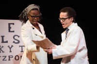 The Landlady (Brett Jordan) and Spinster (Melanie Abrams '17) examine a telegram meant for Mr. Witherspoon. (credit: Staly Chin '15) Rita LaPorta (Tobi Amos '15) explains the circumstances of her lover Tony's death to her cousin, Vinnie DiRuzzio (Josh Scherrer '18), in "Rita's Confession". (credit: Staly Chin '15) Annabel Glick (Carrie Fowle '18) takes detailed notes on Harry's activities with his uncle. (credit: Staly Chin '15) The Emcee (Matt Peairs G) extols the wonders of "Monte Carlo". (credit: Alexander C. Bost) Annabel, in a moment of quiet reflection. (credit: Staly Chin '15) The Nun (Cole Houston '15) mistakes a Leper (David Favela '18) for Harry's uncle. (credit: Staly Chin '15) Rita holds Harry at gunpoint as she takes the body. (credit: Alexander C. Bost) Annabel, Harry, and the cast assure that, after all, it's still "Good to be Alive". (credit: Alexander C. Bost) |